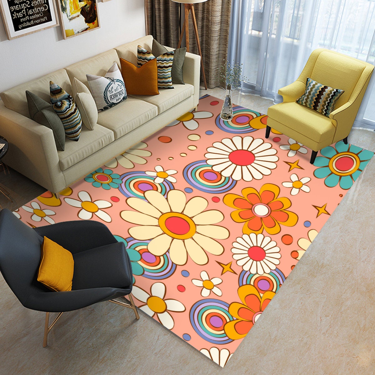 Modern Large Floral Area Rug Colorful Modern Floral Floor Mat Etsy Canada